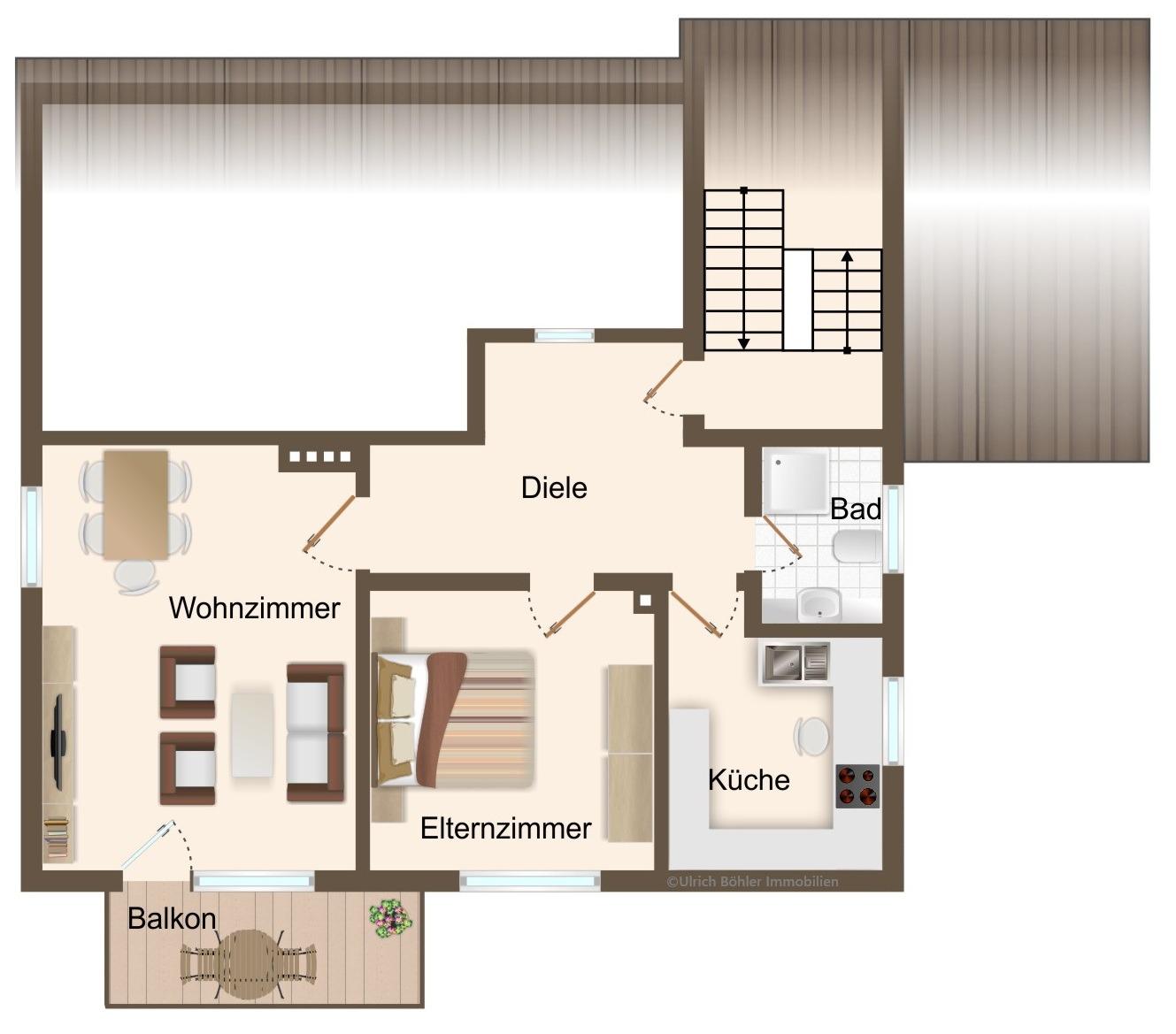 - saniertes und gedämmtes Dach mit glasierten Tondachziegeln