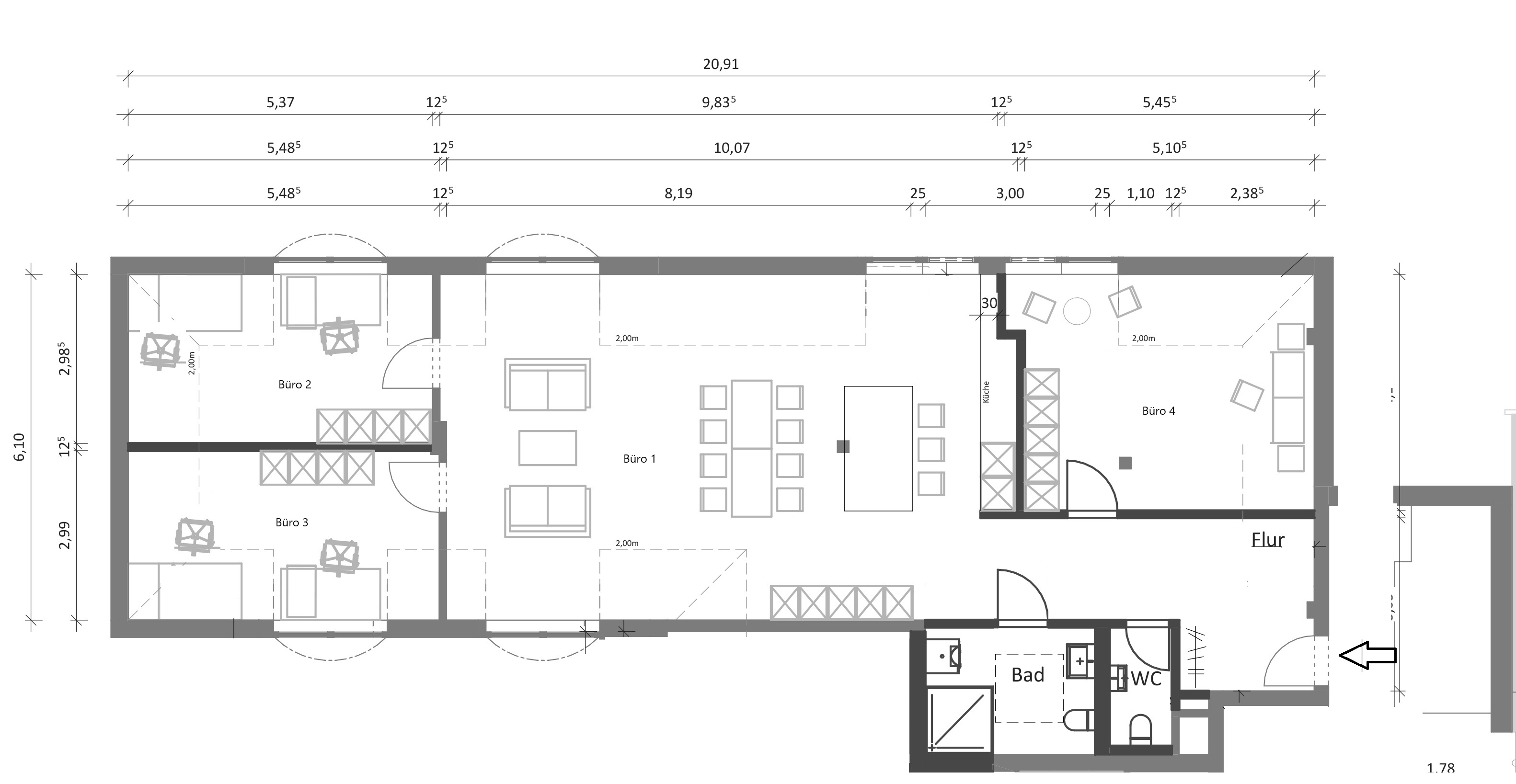 Diese Bürofläche kann auch als Wohnung genutzt werden.