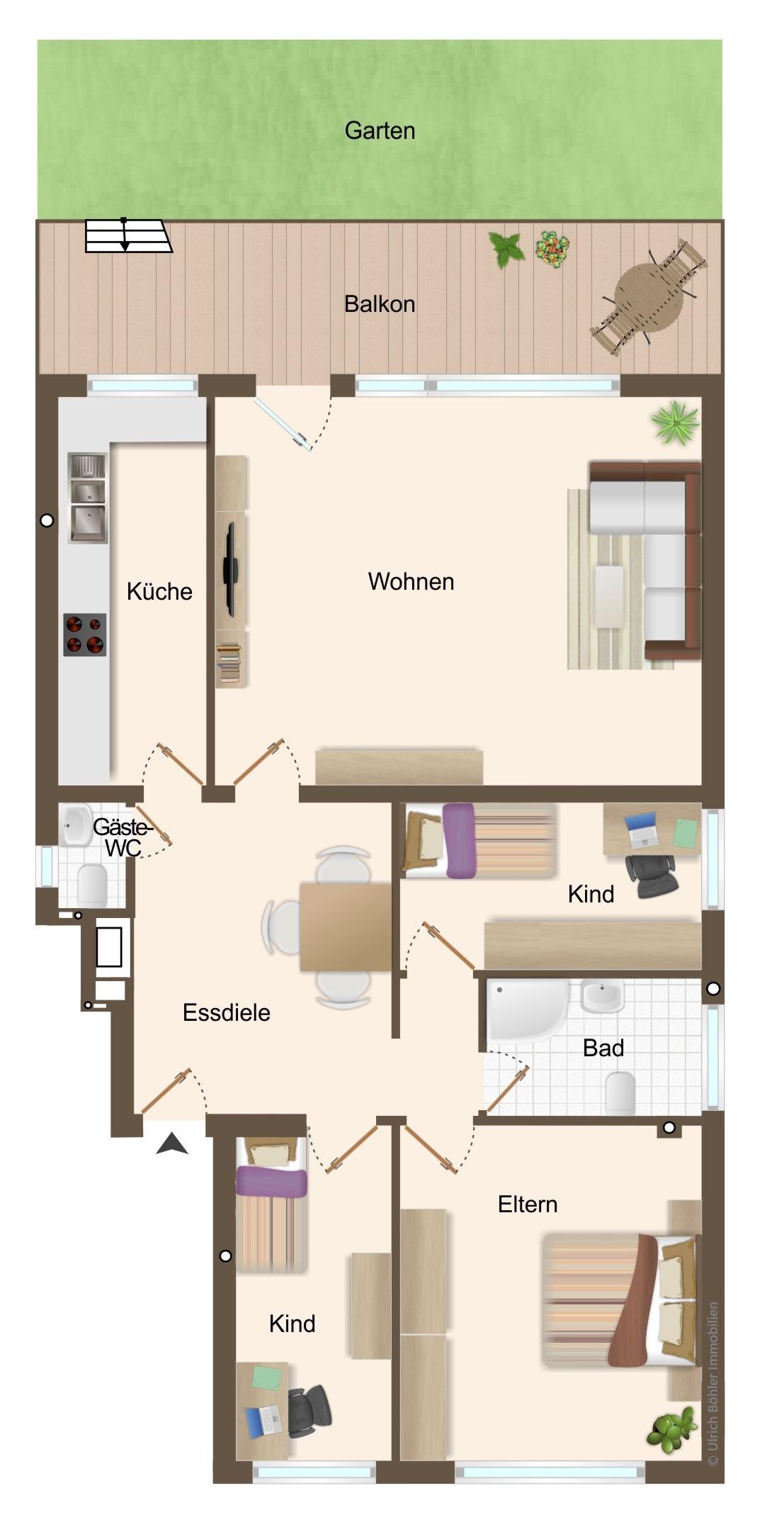 Die gut geschnittene Erdgeschosswohnung befindet sich im Stadtteil Wichlinghofen, welcher im begehrten Süden von Dortmund liegt. Das Haus besteht aus lediglich sechs Einheiten. Der Stadtteil ist geprägt von gepflegten Häusern, viel Grün und einer ruhigen Atmosphäre. In unmittelbarer Umgebung finden sich Schulen und Kindergärten sowie ausgedehnte Waldflächen, was die Wohnlage besonders attraktiv für Familien macht. Zudem sind öffentliche Verkehrsmittel gut erreichbar und die Autobahn ist nur wenige Minuten entfernt.