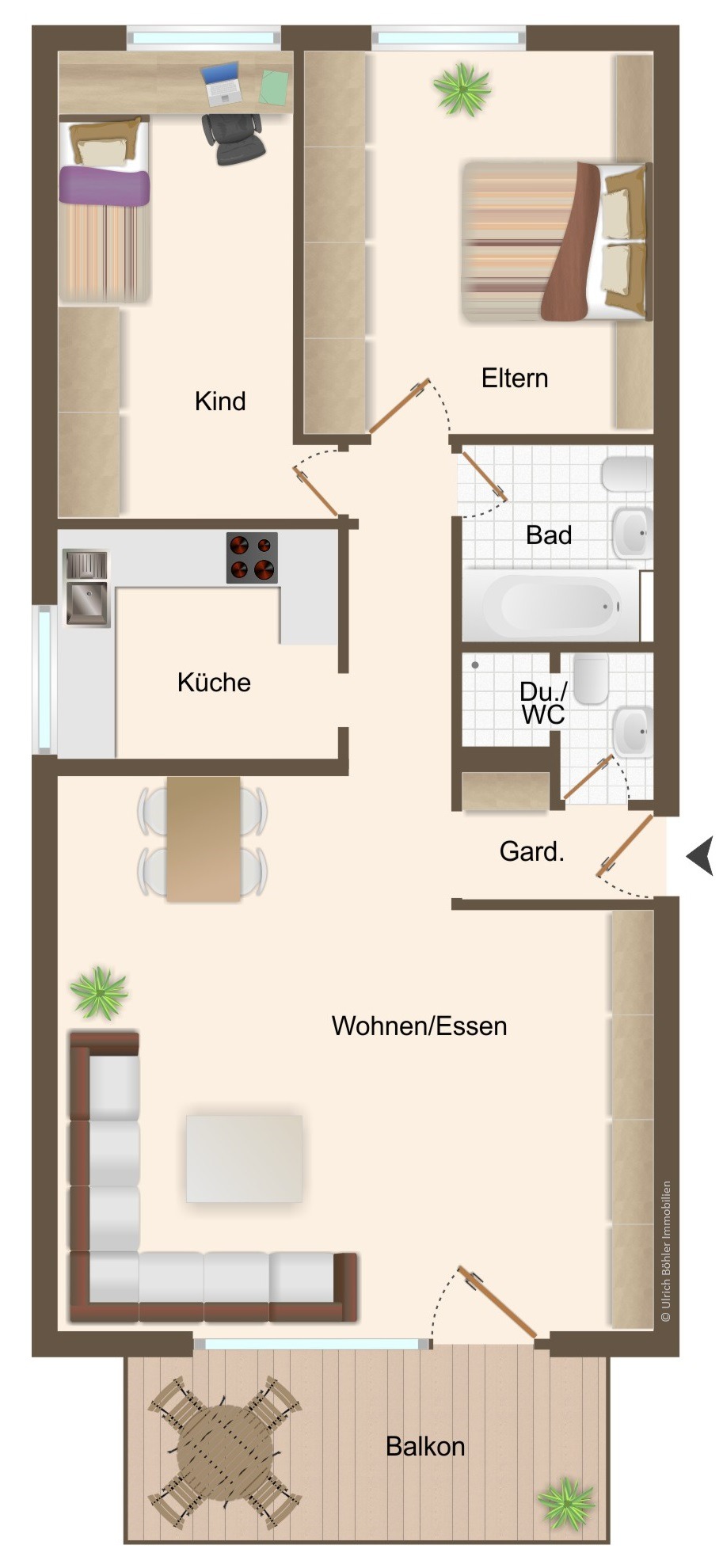 - großer Balkon zur Sonnenseite